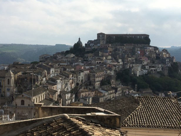 Vi havde booket to overnatninger i Ragusa på Giardino di Pietra; et super godt B&B beliggende ret højt i Ibla og med en helt fantastisk udsigt til den nye bydel fra terrassen, hvor vi spiste morgenmad.