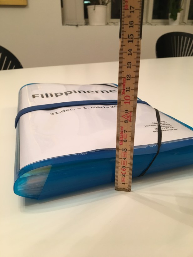 Inden vi stiger om bord på flyet ligger en masse forberedelse. Faktisk ligger der helt præcist 4,5 cm forberedelse, før vi er klar til at vinke farvel til Danmarks gråmelerede vinter i to måneder, men det har været både spændende og hyggeligt, og vi er helt sikre på, at vi har fået strikket en helt fantastisk rejse sammen, som intet rejsebureau kunne gøre bedre. Og hvor bliver det dog dejligt at skulle være sammen med søde filippinere og al deres skønne mad lige om lidt.