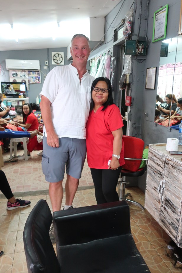 Inden vi forlod Coron og Busuanga nåede Peter at blive klippet. Af frygt for at Peter skulle ende med en frisure som en amerikansk navy seal, fik vi måske lagt lidt for meget vægt på, at det endelig ikke måtte blive for kort, så Peter trænger næsten allerede til at blive klippet igen.