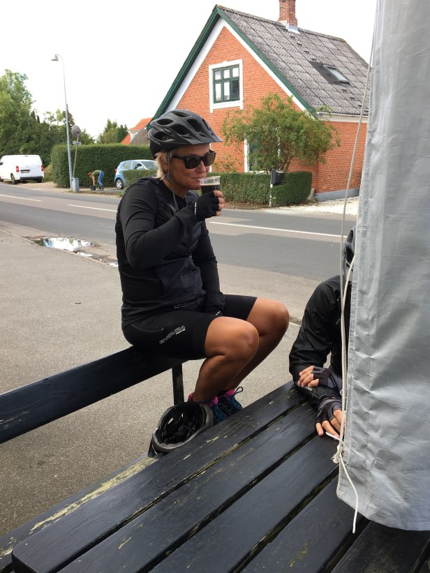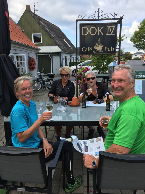 Her havde vi en aftale med vores gode venner, Berit og Michael, kl. 11, der også kan lide en god tur på mountainbike. Vi kunne først checke ind kl. 14, men da vi alle var iført cykeludstyr og havde vand i flaskerne, var der ingen grund til ikke at cykle ned til Svendborg og omegn og kigge os om. Her er masser af gamle, velholdte og smukke huse, så der var masser for øjet. Frokosten indtog vi på Hotel Ærøskøbing (der forvirrende nok ligger i Svendborg!), hvor vi delte en æggekage belagt med så meget stødt spæk, at vi levnede adskillige kg protein. Efter frokosten cyklede vi til Thurø, hvor Peter pludselig genkendte et bryggeri, der laver en øl med snus. Den skulle vi andre også smage! Efter noget besvær – og et kvarter efter officiel lukketid – fik Peter fremtryllet fire plastickrus af øllen “Snuf”, og selv Berit, der aldrig drikker øl, smagte sig igennem et kvart plastickrus. Peter var flink til at “arve” resterne.