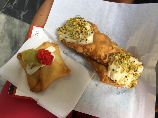 Bagefter var vi rundt på et marked, hvor der blev solgt fødevarer af alle slags. Især deres fisk og grøntsager var rigtig flotte. Og så var det tid til frokost, som vi indtog på Antica Focacceria San Francesco, der siden 1834 har været kendt for den lokale specialitet, pane e milza, der er en bolle med milt!