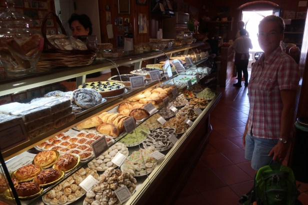 Det her er blot et udpluk af de mange, mange kager, som det åbenbart er nødvendigt at kunne byde sine kunder på hernede. Peter savner i den grad et gedigent gåsebryst i stedet for alle tørkagerne.