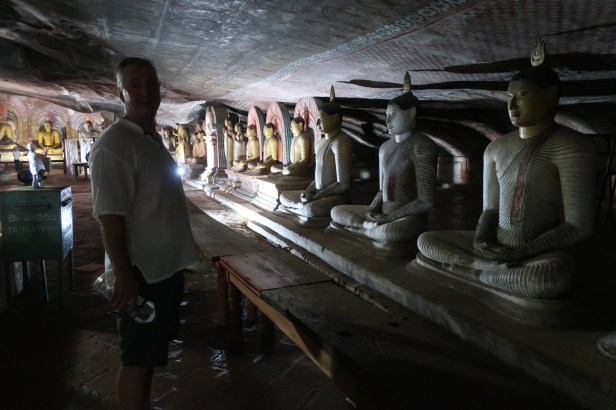Vi havde en køretur på 160 km til byen Dambulla foran os, og det tog 6,5 time at nå frem inkl. frokost. Det svarer til en gennemsnitsfart på ca. 25 km/t. Trafikken er afsindingt tæt, og især buschaufførerne kører helt uforsvarligt. De mange tuk-tuk’er sætter gennemsnitsfarten, og så er der ellers et evindeligt køren ind og ud mellem hinanden garneret med rutebilernes evindelige overhalinger, hvor der reelt ikke er plads. Det virker som om, at folk sætter deres lid til de andre trafikanter og ikke deres egen kørsel i forhold til, om de kommer vel frem. Det virker som et mirakel, at vejene ikke flyder med væltede busser og døde passagerer.