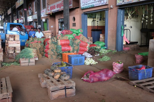 Dambulla er en ret lille by, der ligger midt i det, som kaldes Sri Lankas kulturtrekant, og derfor er der en del turister, der lige som os vælger at bo her nogle dage, men den huser også landets største grøntsagsmarked, og der er altså mange grøntsager. Der er så mange grøntsager, at en stor del bliver købt til eksport, og den srilankanske og indiske regering er i fællesskab ved at bygge et køleeksportlager.
