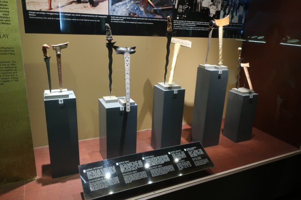 Vi har fundet ud af, at det er en rigtig god idé at besøge nationalmuseer for at lære noget om de lande, vi besøger, så vi cyklede også ud til nationalmuseet i Kuala Lumpur. Der var en stor samling af knive, så Peter gik savlende rundt og fandt ting at skrive på ønskesedlen.