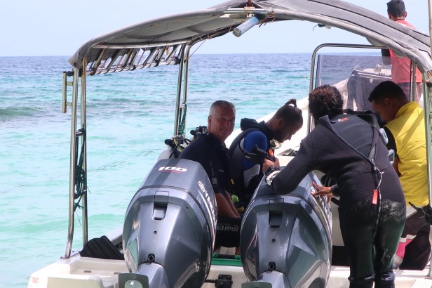 Vi havde læst, at der skulle være rigtig god dykning og snokling på Pulau Weh, så noget af det første, vi gjorde, var at lave en aftale med Lumba Lumba Divecenter om to dyk til Peter.