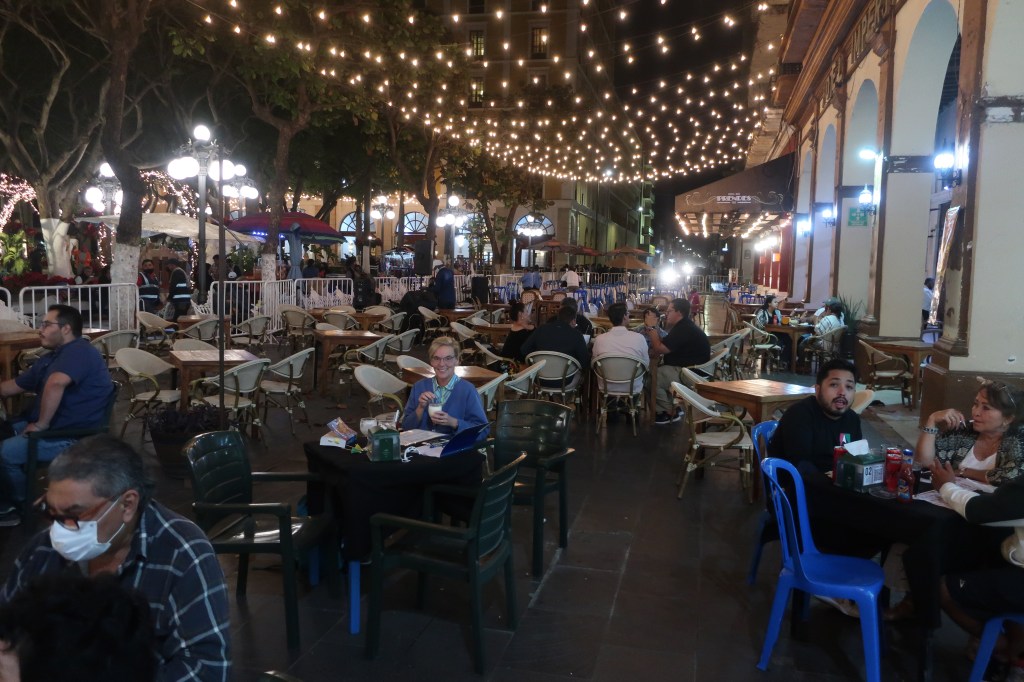 Veracruz – der ligger i gul zone og dermed næsten fungerer som normalt – er en skøn by med et særdeles aktivt byliv, og det var lige, hvad vi trængte til oven på Mexico City, hvor vi knapt nok så 100 mennesker i alt. Vi landede lørdag eftermiddag og indtog straks et bord på en restaurant på byens centrale torv, der ligger 100 meter fra vores hotel. Der var et leben af den anden verden med mindst fem orkestre, der gik rundt mellem bordene og spillede for gæsterne på de mange restauranter og barer, der ligger ud til torvet, og imens gik en masse kvinder, mænd og børn rundt mellem bordene og faldbød diverse varer lige fra “cubanske” cigarer over tørklæder til bogmærker i træ og små kager. Ind til videre er det næsten lykkedes os at undlade at købe noget, men lidt har vi da med hjem til juletræet.
