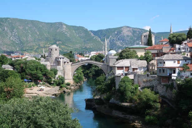 Mostar ligger ca. 10 km væk, og selvom det er varmt, og turen hjem går op ad (det gør turen ned ad sjovt nok også), så har vi været friske og cyklet derind for at se en af en af Bosnien-Herzegovinas største attraktioner; Stari Most (byens gamle bro, der forbinder de to bydele på hver side af floden Neretva).