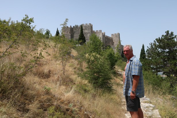 Det var en VARM tur op til Blagajs gamle borg bygget af Herceg Stjepan (Hertug Stefan) engang i 1300-tallet. Det er en vandretur på ca. 1 km ad en snoet sti, men det var faktisk svedeturen værd, for vi havde det hele for os selv, og udsigten fra ruinens højeste tårn ud over hele dalen og Buna-flodens bugtninger var super. Det kan anbefales at medbringe en flaske vand (hvilket vi ikke havde, for man skal som bekendt lære af sine fejl).