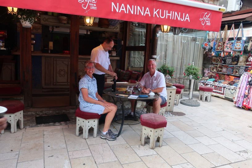 Vores første aften i Sarajevo spiste vi hos Nanina Kuhinja (Bedstemors Køkken), og hvem end bedstemor er, så er hun ferm til traditionel mad. Det smagte forrygende og så glemmer man heldigvis hurtigt de lidt dårlige stole.