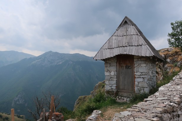 Belønningen for en times kørsel på støvede grusveje ude midt i ingenting er en hyggelig lille landsby, hvor husene er bygget af sten med trætage og en helt fantastisk udsigt direkte ned i dalen, der hvor vejen ender, og hvor landsbyens offentlige ‘toilet’ ligger. Der er naturligvis ingen kloakering, så gammeldags das findes alle vegne. Lukomir er blevet foreviget på frimærker, så dem, vi har sendt postkort til, kan se et luftfoto af den lille landsby langt væk fra alle andre.