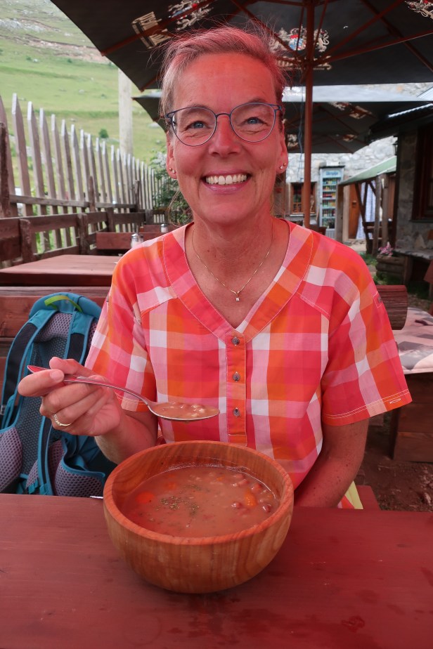 Lukomir har én restaurant, og den dag vi besøgte byen stod menuen på bønnesuppe med hjemmelavet blåbærsaft til. Det smagte overraskende godt, så vi kan sagtens anbefale, at man lægger vejen forbi.