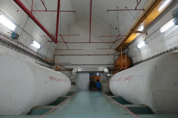 Vandforsyning er naturligvis noget af det vigtigste, hvis man skal overleve, og bunkeranlægget har dels adgang til vand fra floden Neretva, og dels et indendørs vandreservoir i tilfælde af atomkrig, hvor vandet fra floden er forurenet med radioaktivt nedfald. Her står Camilla i den lange skakt, der leder ned til pumpen, der kan hente vand fra floden.