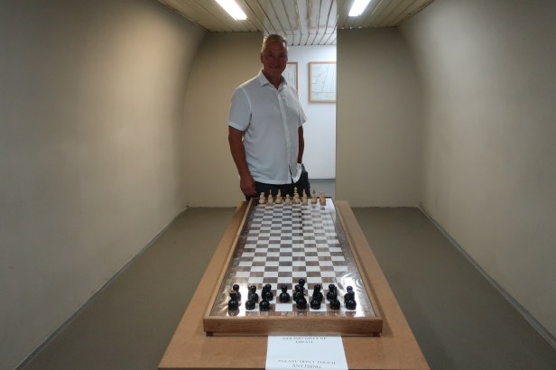 Et andet værk er dette meget lange skakspil, der skal symbolisere den endeløse kamp, som krig er. Desværre har en tidligere besøgende taget to af brikkerne.