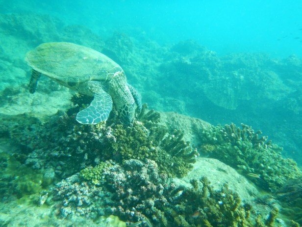 Men vi så flere Hawksbill skildpadder, og skildpadder er altid en helt særlig oplevelse – ligesom ugler, kolibrier og vandfald.Camilla har heldig at fange et godt billede af den sjældne Peter-fisk, der ellers helst opholder sig i nærheden af rødvin og ikke vand.