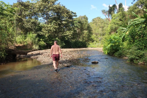 Ca. 10 minutters gang fra vores hytte lå en lille flod, som vi en dag vadede op igennem i 4-5 timer. Det var en super skøn dag, hvor vi så en masse fugle, leguaner og sommerfugle. Fordi vi gik i floden, blev det trods sol og 30 grader ikke for varmt.