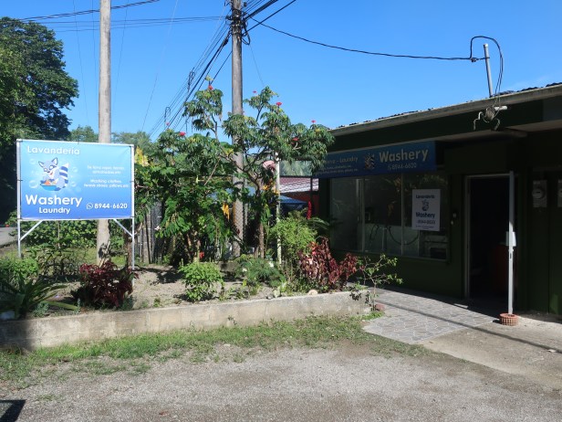 I går, fredag, skiftede vi opholdssted til byen Uvita. Der er kun én rigtig vej væk fra Osa-halvøen, og da vi havde kørt omkring 40 km, var trafikken gået helt i stå, og vi holdt bag en masse biler, der havde katastrofelyset tændt. Os ud af bilen og på gåben op ad vejen for at finde ud af, hvorfor vi holdt stille. Det viste sig, at en elmast omkring 15 minutter tidligere var kollapset. I hvert fald lå den inkl. elledninger og spærrede hele vejen. Der stod en del lastbilchauffører, som vi spurgte, hvor lang tid, de vurderede, der ville gå, inden vejen var ryddet, så vi kunne komme videre. Deres bud lød på 6-8 timer! Så vendte vi bilen og kørte mod syd igen. Heldigvis har vi købt et kort hjemmefra, og på det kunne vi se, at der skulle være en alternativ vej på tværs af den nordlige del af halvøen. Den angivne vej var godt nok stiplet, men det skulle da prøves. Aldrig har vi kørt så mange km på så dårlig vej, men hver gang Peter sagde, at nu går den nok ikke meget længere, så tænkte vi på køen af biler på asfaltvejen, der formentlig stadig ventede på, at vejen blev ryddet, og så kørte Peter videre. Der var faktisk hul igennem hele vejen, og Peter og Kicksen klarede den uden firhjulstræk.