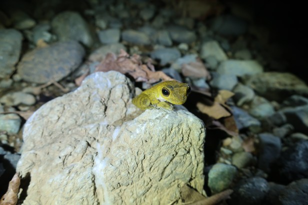 Et af de første dyr, vi så, var den Rødøjede Træfrø, som man simpelthen SKAL se, når man er i Costa Rica. Den er vist ikke særligt sjælden, men med sin flotte, grønne farve og røde øjne er den jo vældigt fotogen.Den flod, vi et par dage forinden havde travet rundt i ved dagslys, så helt anderledes ud kl. 18.30, da vi sammen med Rolando kom vadende i lånte gummistøvler med lommelygter. Denne slags slange – Katteøjet Slange – så vi rigtigt mange af, mens de lå på lur ved flodbredden efter små frøer. Katteøjede Slanger er IKKE giftige, så Peter aede selvfølgelig denne, efter han havde taget dette billede.Og her er så slangernes yndlingsmad – en lille (35 mm lang), fin gulliggrå frø, som der var myriader af. Vi har hele tiden lige ved at træde på dem, og flere gange ramte de os, når de sprang rundt. Men farven er der ikke noget galt med.Det var ikke kun slanger, frøer og tudser vi så på vores nattrek. Her har vi fanget en pungrotte, der prøver at ignorere os, så godt den kan.Vi har gemt nattrekkets to bedste dyr til sidst. Her er Camillas favorit: en kæmpestor tarantel med alt for mange hår på benene. Den er indbegrebet af uhygge og skrækfilm, men egentlig ganske fredelig, når man bare står lidt på afstand og kigger.Peters favorit var denne lille hornugle, der nok så nydeligt blev siddende på sin pind, mens vi fotograferede løs. Den kiggede vist lige så meget på os, som vi kiggede på den. Det særlige ved ugler er, at man aldrig ser dem. Ja, der er også ugler i Danmark, men vi ser dem aldrig. Hvis det endelig sker, er det altid en helt særlig oplevelse.Fordi vi ikke lader os stoppe af noget så ligegyldigt som 30 grader, solskin og traveture på op-og-ned-stier i tropisk regnskov, bliver det muligt at tage nogle MEGET svedige selfier. Den yndige blå klud, som Peter har smykket sig med, er en uundværlig ven, der er blevet døbt Fufu, som fungerer som svedaftørrerklud, når Peter overopheder. Camillas sved formår på uforklarlig vis at springe direkte ud fra pande over på brilleglas, hvorfor hendes briller det meste af tiden på vores traveture er tæt på uigennemsigtige.Der er tukaner og araer alle vegne på Osa. Man enten ser eller hører dem det meste af tiden, men det gør dem jo ikke mindre imponerende at kigge på.Der der er 30 grader om dagen, og man ikke sidder helt stille, så kræver det et nyt sæt tøj hver dag, hvis man ikke skal lugte alt for fælt. Derfor er det guld værd at finde et godt vaskeri, og i løbet af vores 7 dage på Osa, nåede vi at aflevere vasketøj på dette vaskeri i Puerto Jimenez to gange. Tøjet bliver rent, og priserne er særdeles rimelige.