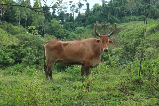 Rigtigt mange steder ser vi denne lille rovfugl, som det er ret let at komme tæt på. Det er en Lys Caracara, og der er ikke meget kongeørn over den, for den vralter mest rundt på jorden, hvor den finder ådsler og småinsekter.Der er en del kvægdrift på Osa, og på en af vores mange ture kom vi forbi denne flotte tyr. Landmanden var tydeligt stolt af sit flotte dyr og fortalte lystigt på rablende spansk om sin bedrift (tror vi nok), da han så, at vi fotograferede tyren.