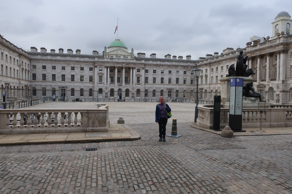 Peter nærstuderer Renoirs maleri af en kvinde i en teaterloge. Især hendes øjne og hud fangede os meget. Sammen med van Goghs selvportræt med forbundet øre er dette Manet-maleri af baren i Folies-Bergère et af samlingens absolutte højdepunkter. Courtauld Gallery ligger i en lille afdeling af Somerset House, der er en gigantisk bygning. Det meste bliver brugt til forskellige kunstuddannelser. Dronning Elizabeths begravelse i morgen, mandag, fylder naturligvis en del. Her står vi ved alléen ned til Buckingham Palace, hvor briter i hobetal går ned og lægger blomster. Fredag kl. 10 stod vi klar ved Victoria & Albert Museum, der er verdens største museum for design. Det har åbent alle dage fra kl. 10-18, og det er gratis at komme ind.