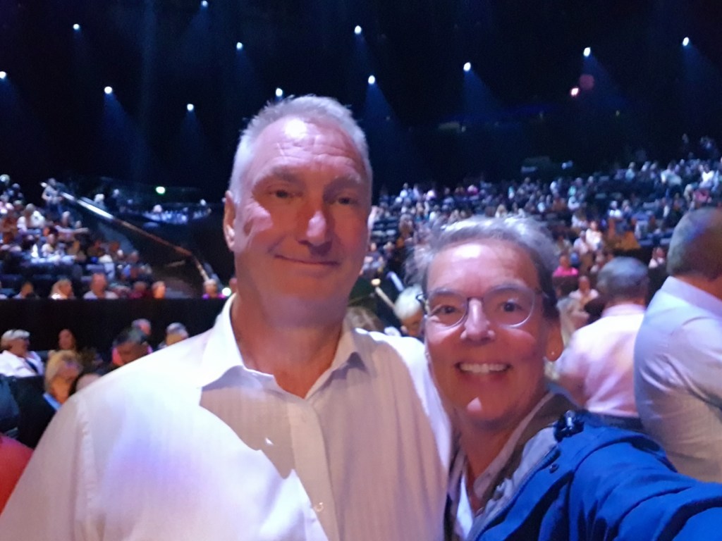 Her er fortæppet til Wicked, en forestilling der har gået på Appollo i 16 år. Det var en super god forestilling med masser af gode sange, flotte kostumer og god lyd. Lørdag oprandt endelig turens højdepunkt, ABBA-koncert i ABBA Arena, der er bygget specielt til formålet. Vi er klar! Små to timers non-stop ABBA-hits, og vi kunne alle teksterne. Det kunne alle de andre publikummer også. Tænk, at så mange gråhårede mennesker kan synge og danse så højt og længe. Det var mere et show eller en musikforestilling end en koncert, men lyden var god, og hologram-effekterne fungerede fint. Og nu sidder vi i loungen i Heathrows terminal 5 og venter på at komme hjem. Det har været en skøn tur med ikke under 16.000 skridt om dagen og en masse gode oplevelser.