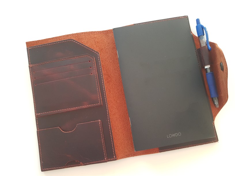 Der er ikke længe til, at vi pakker shorts & solcreme for at tage ud og spise sydhavsfrugter. Vores vinterrejse rykkede lidt tættere på og blev lidt mere virkelig i dag, da Peter forærede mig denne lækre rejseportfolio i læder i kærestegave. Den er tænkt til at opbevare postkort og frimærker i, når vi rejser, indtil postkortene er blevet skrevet og efterfølgende afleveret på et posthus. Den skal nok blive brugt flittigt, og det bliver skønt at kunne belaste PostNord med rigtig post i de kommende par måneder.