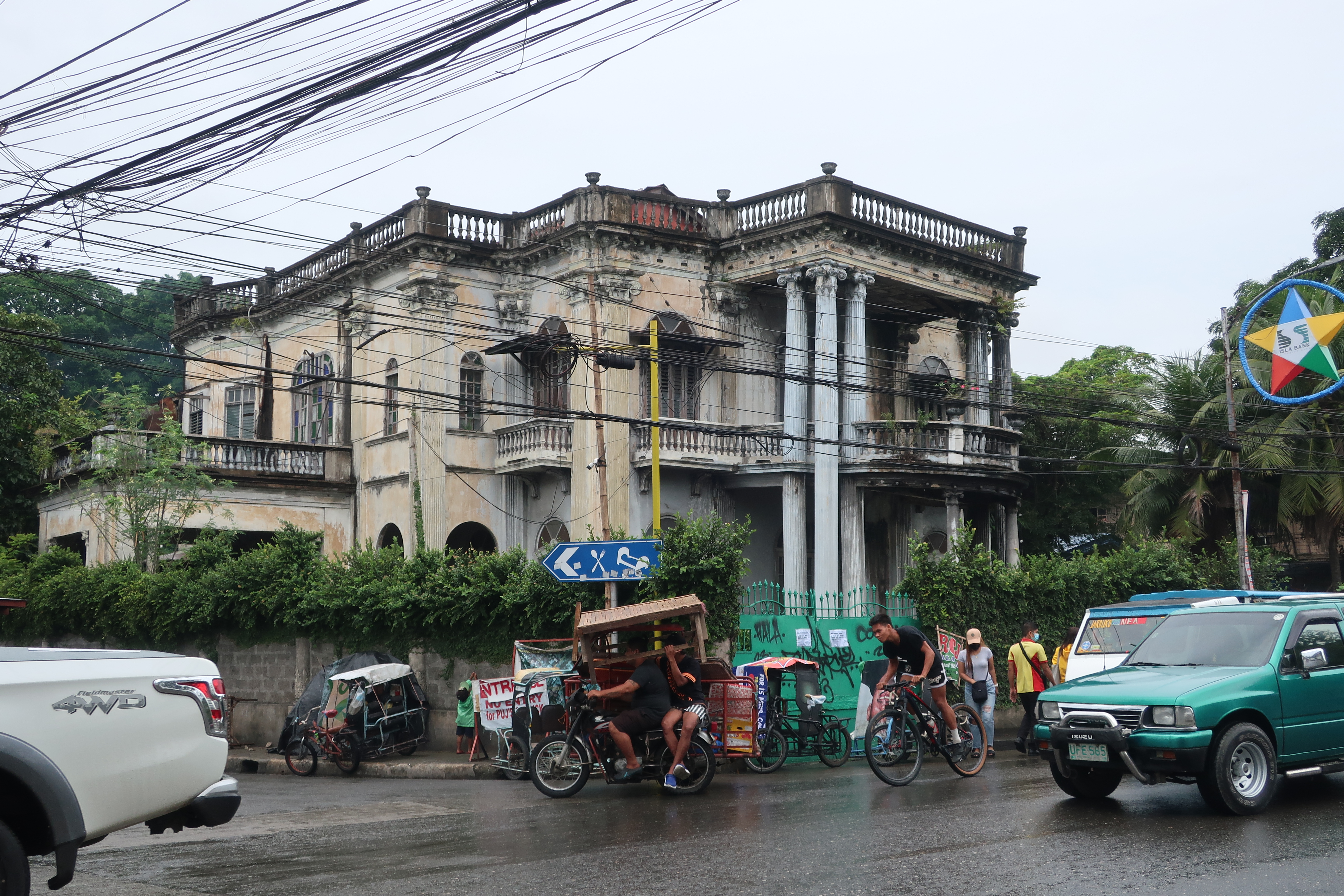 Nelly’s Garden, et af de ganske få gamle kolonihuse, der er vedligeholdt. Det er bygget med Det hvide Hus i Washington som forbillede og ligger tilbagetrukket midt i et kæmpe parkanlæg. Billedet viser forhåbentlig, hvor imponerende og smukt man har kunnet bygge herude.100 meter fra Nelly’s Garden ligger denne forfaldne perle. I et land, hvor der næsten ingen gamle, smukke bygninger findes, er det trist at se dette palæ forfalde, men det koster også enorme summer at sætte det rigtigt i stand, og penge er ikke det, den almindelige filippinerne har mest af. Vi så og fotograferede flere af disse “ruiner”, og der boede faktisk mennesker i de fleste.