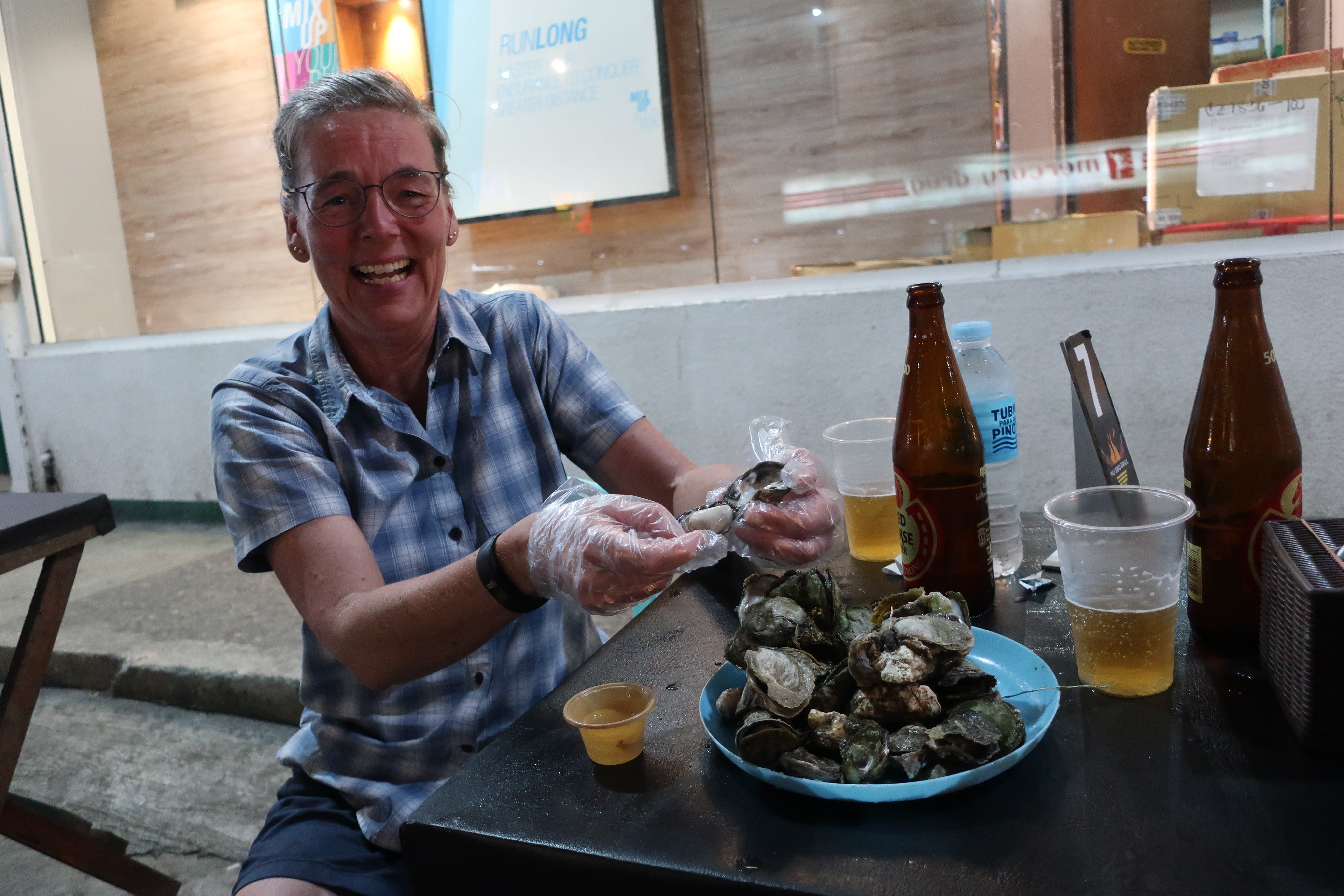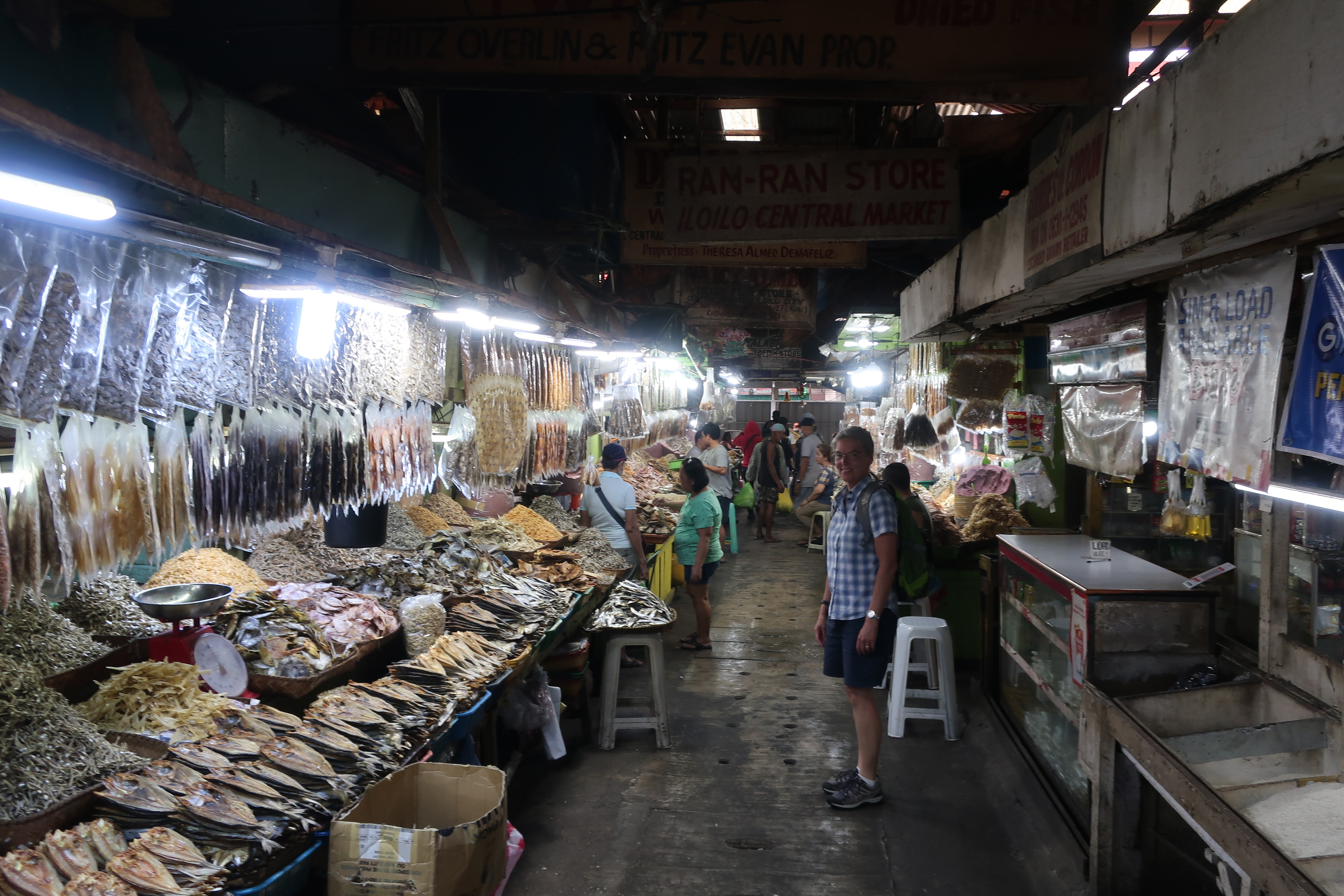 Her lejede vi vores scooter for fire dage. Det var fuldstændig smertefrit og ukompliceret. Søg på “Iloilo Motorcycle Tours” på Google Maps og stop ved dette skilt. Der, hvor vi lejede scooteren, blev vi anbefalet at køre mod syd langs kysten for at se denne kirke i landsbyen Miagao. Den er bygget for små 200 år siden som en del af bymuren og har som så meget andet i Filippinerne været ødelagt af krig og jordskælv flere gange, men som med alle kirker, er den blevet bygget op igen hver eneste gang. Den er bestemt ganske bemærkelsesværdig med sine tykke mure og de to forskellige klokketårne, og det var en fin køretur på 2 x 40 km.Iloilos mest kendte marked hedder Lapaz, og der er på et eller andet tidspunkt blevet opfundet en suppe, der hedder Batchoy. Efterfølgende har vi fundet ud af, at den bliver solgt over hele Panay, men vi kan prale af at have spist Batchoy til frokost i Lapaz sammen med en masse studerende fra de omkringliggende highschools og universiteter. Og her er den så, den berømte Lapaz Batchoy. En skålfuld koster 45 pesos (ca. 8 kr.), og den smager rigtig meget af flæskesvær. Udover flæskesvær er nudler og lever en uundværlig del af en hvilken som helst Batchoy-opskrift.Udover Lapaz Market har Iloilo også sit Central Market, der især er kendt for sin afdeling med tørrede fisk. Og den var virkelig imponerende! Alt var lagt og pakket minutiøst, men det mest imponerende var den næsten ikke-eksisterende lugt af fisk. Der var heller ingen fluer, så man kan trygt tage til Iloilo og købe sine tørrede fisk.Og nu vi er ved fisk, så er Peter som bekendt en fast tilhænger af, at man skal prøve alting mindt én gang. I Iloilo spiser alle dampede østers, så det skulle vi også prøve, og 1, 2, 3 sad vi med engangshandsker på og spiste østers dyppet i eddike. Som med så meget, så er dampede, filippinske østers nok noget, man skal være vokset op med, for at kunne påskønne smagen, så vi endte med at give det meste af vores portion til nabobordet.