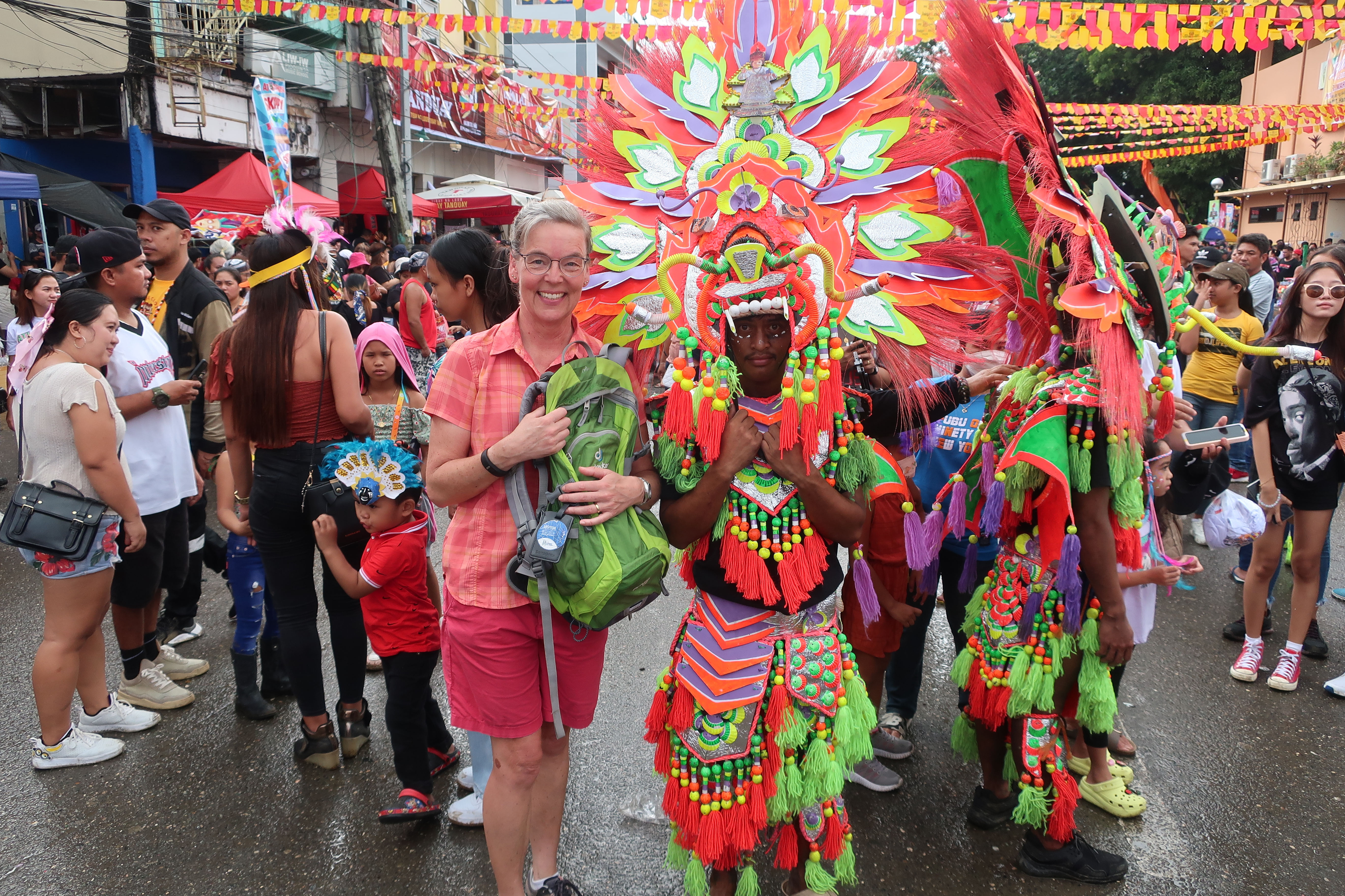 I byen Kalibo, der ligger et par timers kørsel vest for Roxas, afholdes hvert år Filippinernes største religiøse festival, der kulminerer tredje søndag i januar, så der kørte vi hen for at fejre vores kærestedag. Ati-Atihan, som festivallen hedder, er en fejring af Jesusbarnet, men oprindeligt var det en slags filippinsk Thanksgiving, hvor indbyggerne på det nordlige Panay fejrede det gode naboskab mellem en lille gruppe muslimer, der var flygtet fra Borneo til Panay og blev venligt taget imod af de ati’er, som boede på øen. Muslimerne sværtede sig sorte i ansigterne under festlighederne for at vise, at de respekterede ati’erne så meget for deres venlighed, at de ønskede at ligne dem. Og Ati-Atihan betyder direkte oversat “at ligne en ati”. Senere, da spanierne kom med kristendommen, fik nogle munke blandet Jesusbarnet ind i festlighederne, så det i dag er en kristen festdag, men der er stadig masser af udklædning og sortsværtede ansigter, der har rødder helt tilbage til 1200-tallet.