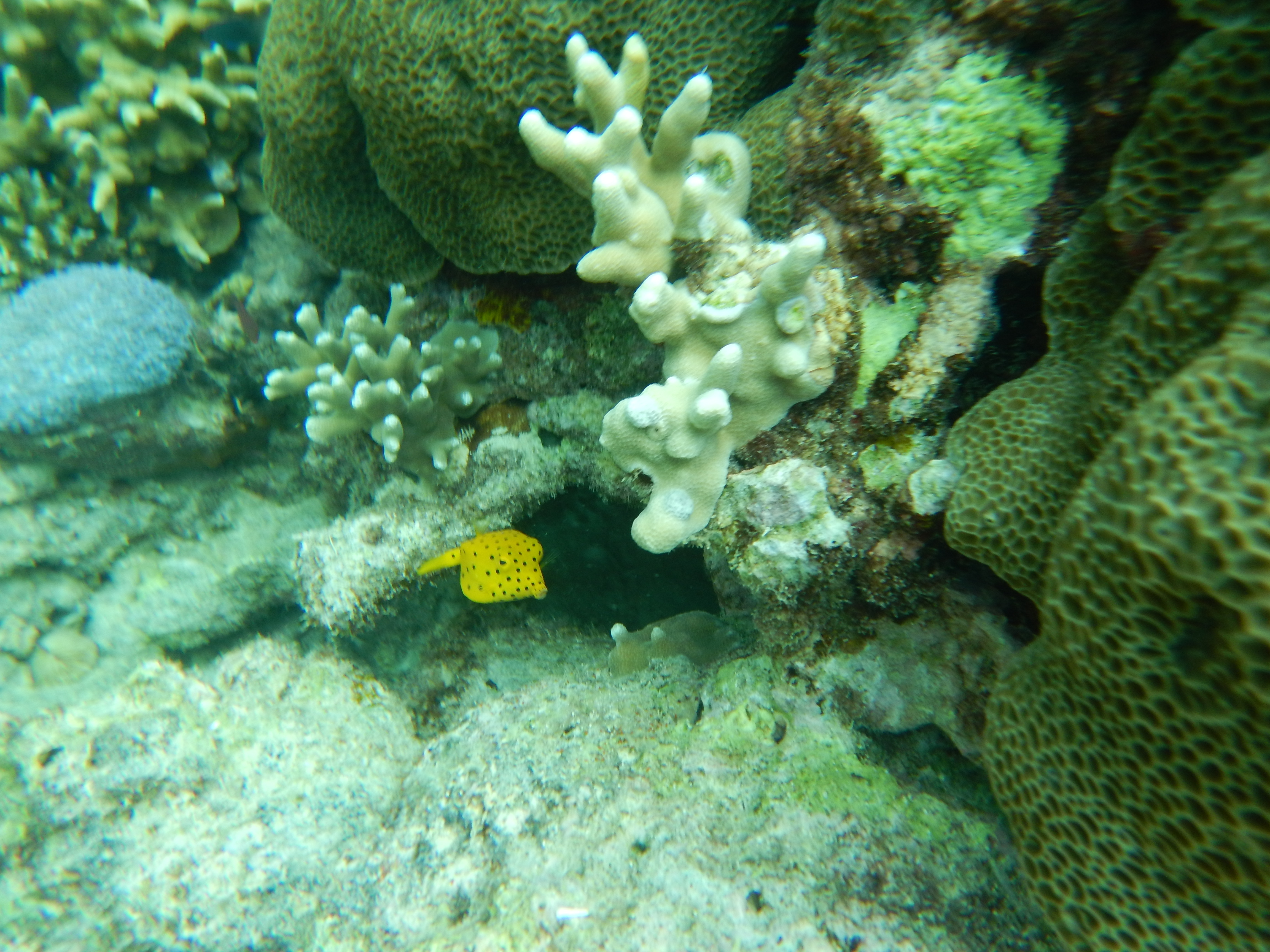 Vi er ret pjattede med kuffertfisk, der kan se ud på mange forskellige måder. Ud for Sumilon knipsede Peter denne lille gule fætter, inden den skyndte sig at stikke af.