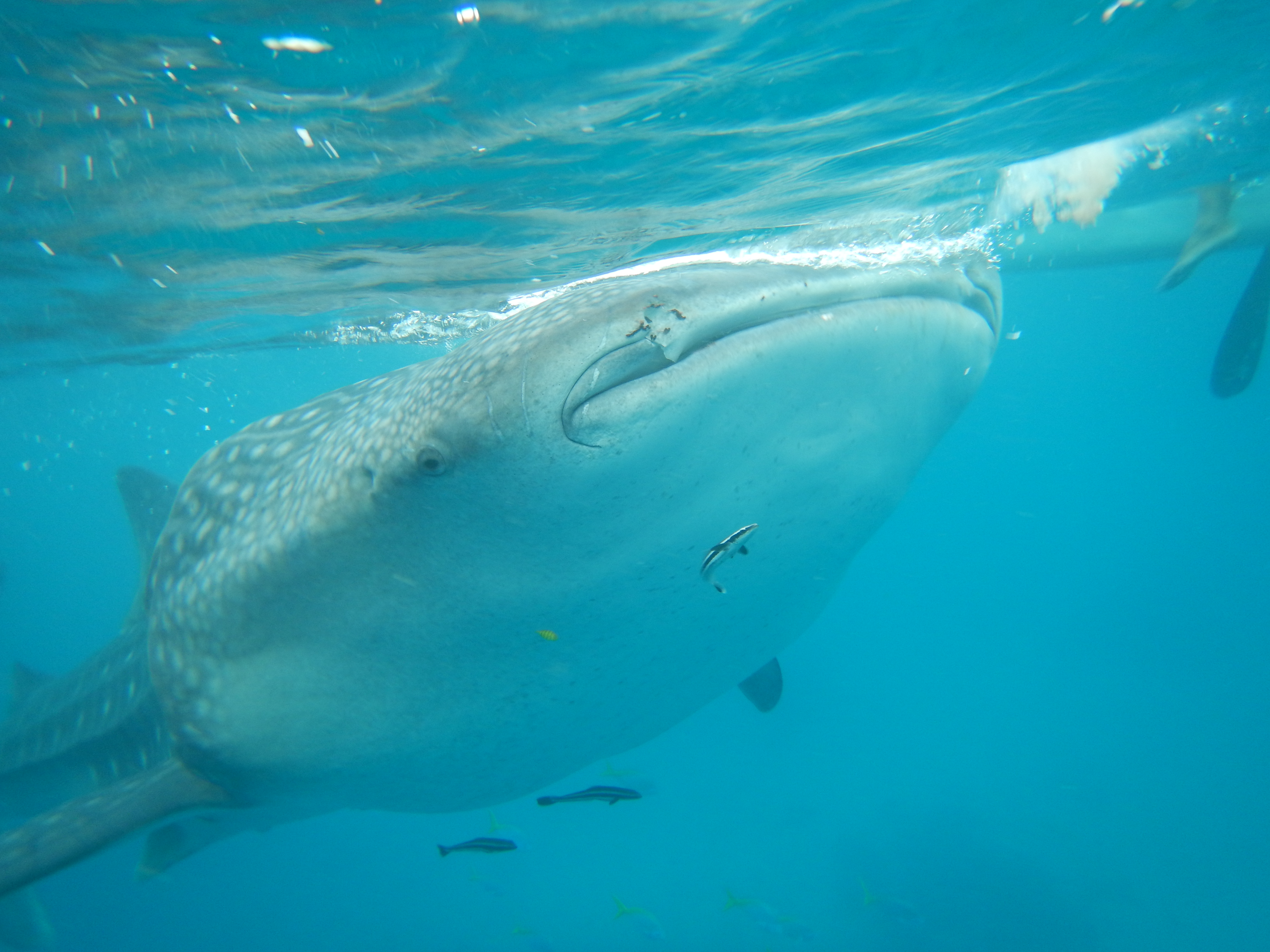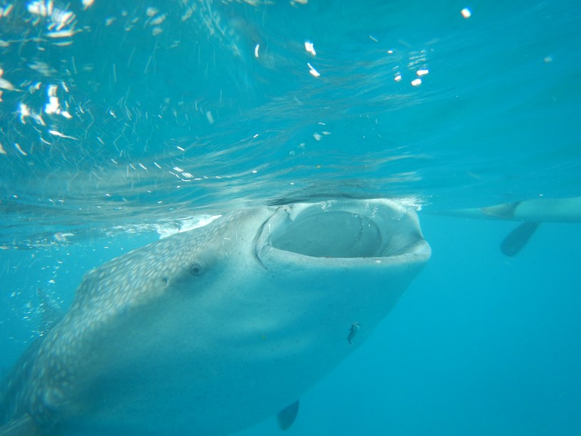 Bådturene ud til stedet, hvor hvalhajerne holder til, foregår fra kl. 6-12; efter middag får de fred fra de mange både og mennesker for at beskytte dem. Af en eller anden grund får alle at vide, at man skal være på havnen kl. 6 – og helst endnu tidligere – så da vi ankom kl. 5:30 var der allerede sort af mennesker. Et par dage i forvejen havde vi spurgt en mand, der arbejder på bådene, hvor mange mennesker, der havde vores forbi den dag, og da han sagde 1.400, tænkte vi, at han måtte være fuld af løgn eller virkelig dårlig til tal. Nu ved vi, at han sikkert havde ret. Køen til at løse billet (500 PHP = ca. 65 dkr) udviklede sig til en spiral, og først da klokken blev 6, begyndtede at sælge billetter og organisere bådene. På trods af det enrme virvar, var der fantastisk godt styr på alting. Der er otte turister i hver båd, og alle får 30 minutter i vandet, før man bliver kaldt op i båden igen og sejlet ind til stranden. Vi var inde på land igen kl. 7:30, og på det tidspunkt var køen kun to meter lang, så vores råd til alle, der gerne vil snorkle med hvalhajer på Cebu, er, at vente med at komme til kl. 8:00.