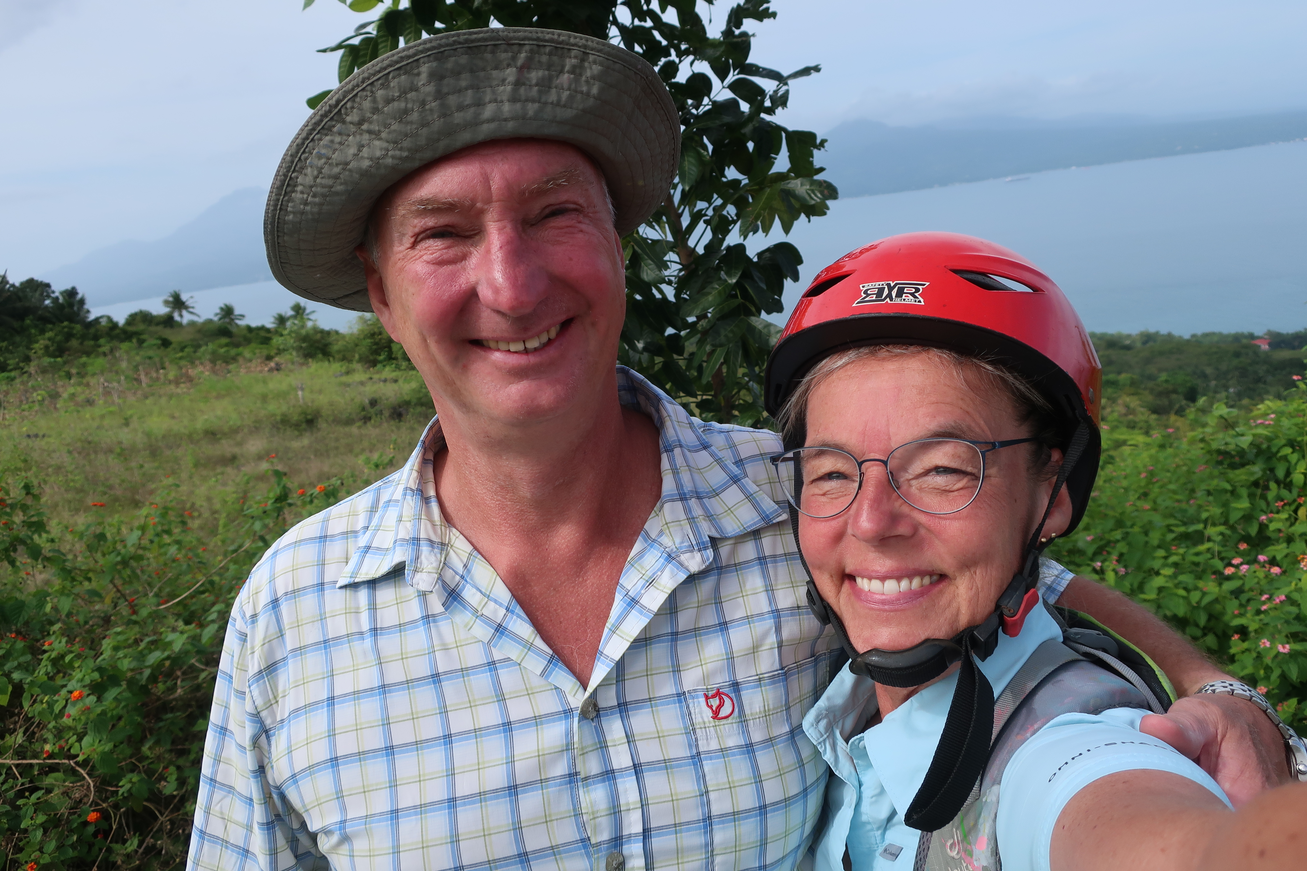 En af dagene kørte vi op i bjergene på den motorcykel, vi havde lejet gennem hotellet. Det meste af jorden er enten lava eller koralkalk, og der blev bl.a. dyrket dragefrugter. Lige så beskidt og larmende Filippinerne er i de store byer, lige så charmeende er landet, når det først lykkes at komme langt nok væk, og det gjorde vi den dag.