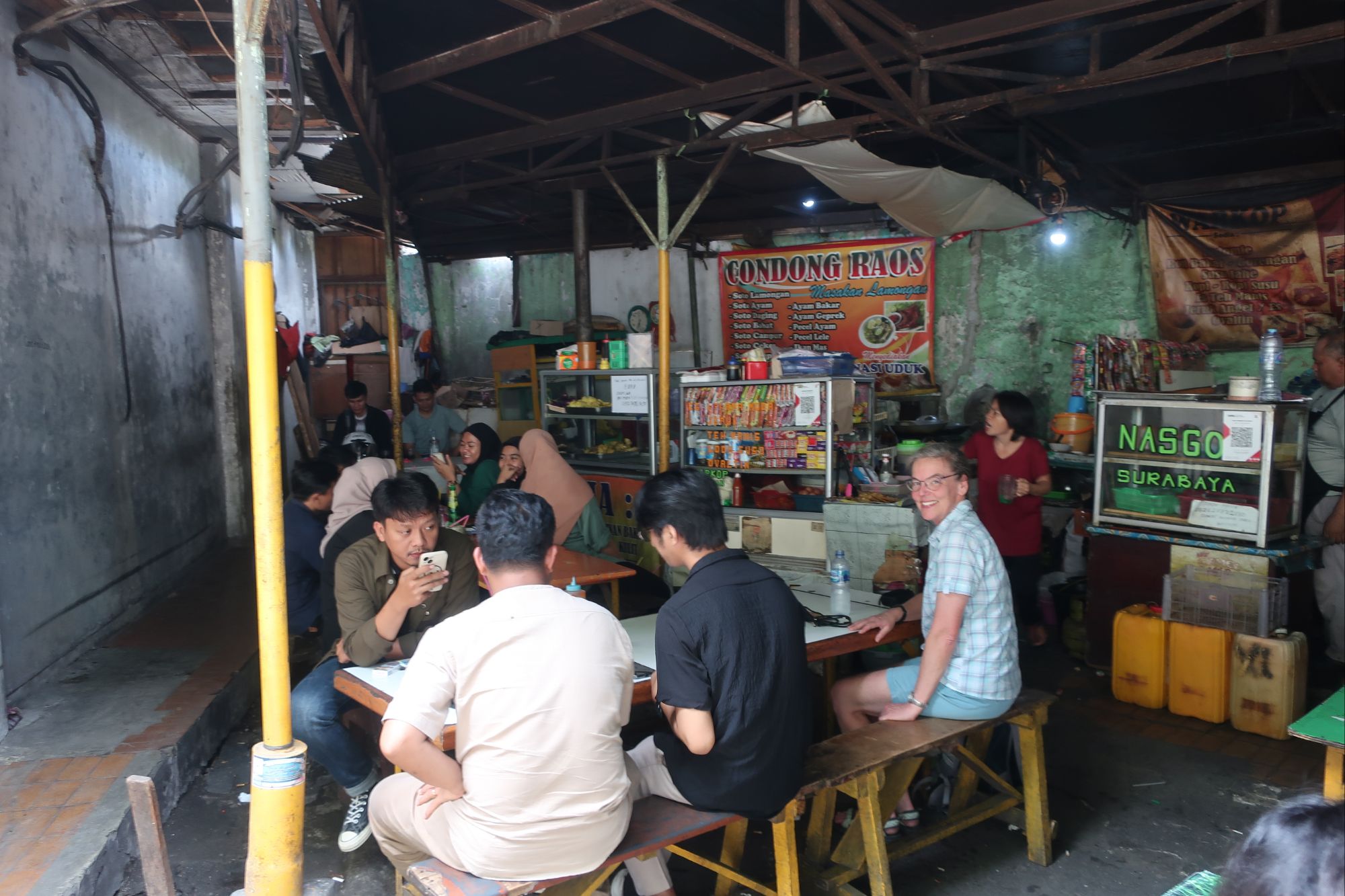 Sidst vi var i Jakarta spiste vi flere gange frokost på et gadekøkken, der lå bag ved en skole. Vi var spændte på, om det havde overlevet corona, men det havde det heldigvis, så vi igen kunne bestille to skåle bakso ayam. Bakso er en indonesisk specialitet, hvor man får kyllingesuppe med kødboller og enten ris- eller ægnudler. Det fås i mange variationer, men dette gadekøkken laver en fantastisk udgave med flere små oksekødsboller og én stor kødbolle med et æg inden i. Det smager himmelsk!