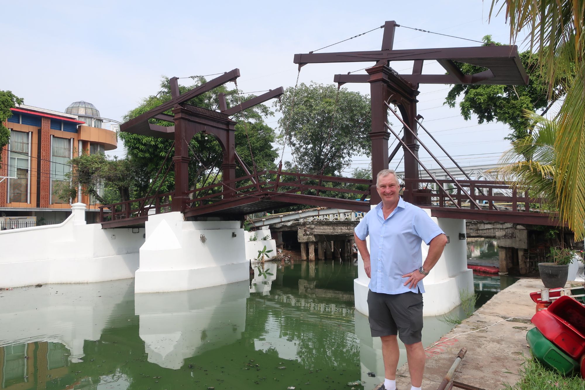 Selvom vi har været i Jakarta flere gange, er det på underlig vis lykkedes os at gå glip af en næsten 300 år gammel hejsebro i træ, som hollænderne byggede. Den blev fint restaureret for ca. 15 år siden og er bestemt et kig værd.