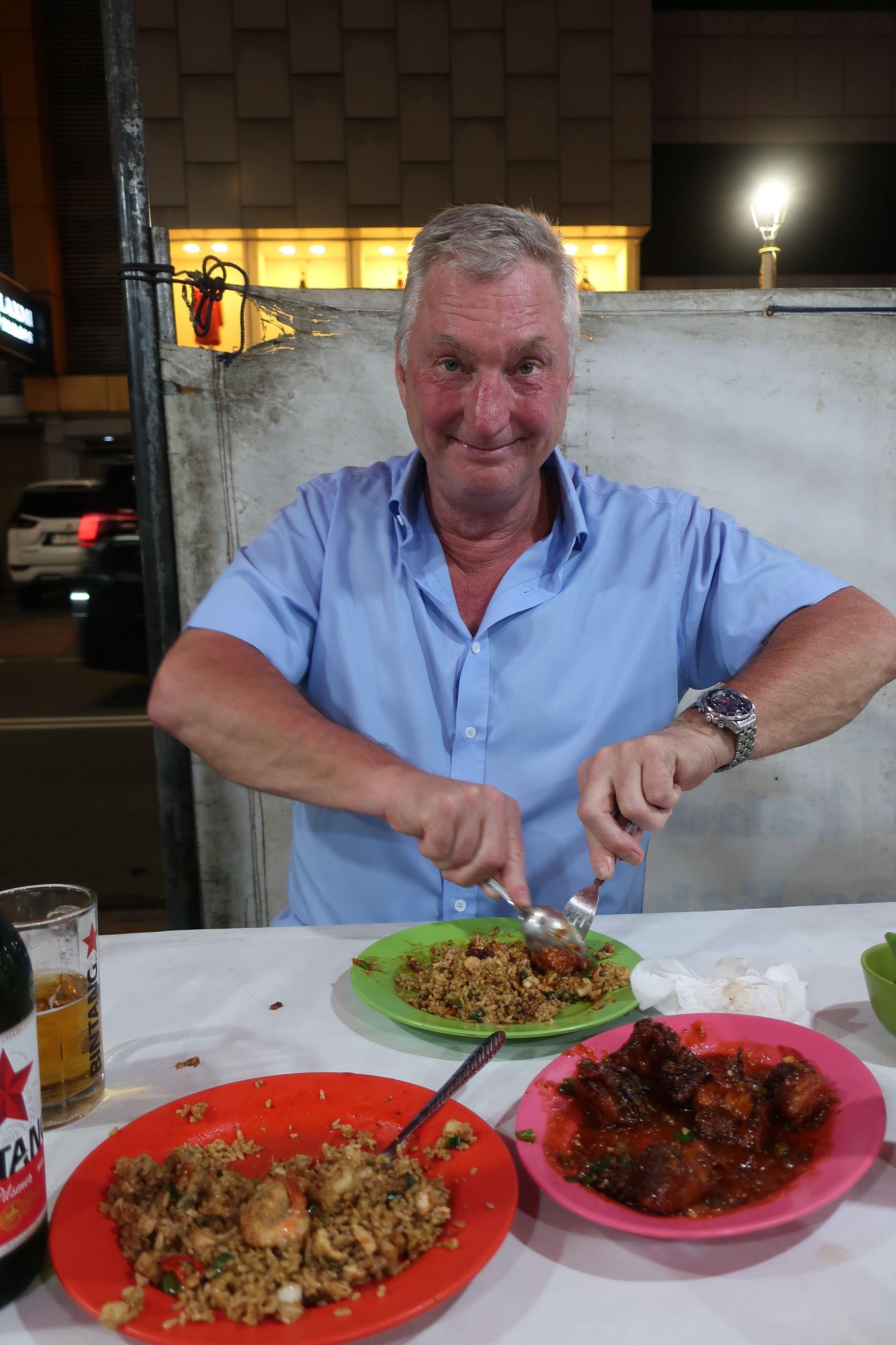 Nogle gadekøkkener lever af frokostgæster, mens andre først dukker op om aftenen. Her er Peter i gang med Ayam Rica Rica, der er en af indonesiens stærkeste retter, og det siger ikke så lidt. Indoneserne har et helt særligt forhold til chili, der bliver brugt i næsten al mad.