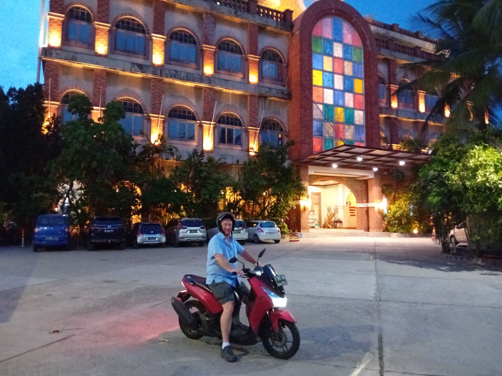 De hoteller, vi før har boet på i Jakarta, kunne vi ikke booke, da vi planlagde turen (corona?), så vi havde fundet et nyt, der ligger i ca. samme område; 3 skridt og 1 spytklat fra byens største park med nationalmonumentet MONAS. Hotellet hed Millennium Sirih Jakarta og var aldeles udmærket med en gigantisk morgenmadsbuffet med tålmodigt personale, der fejede op efter de børn, der spildte mere, end de spiste. Men det bedste ved hotellet var, at vi ved receptionistens hjælp på ca. 20 minutter fik arrangeret leje af en motorcykel, så vi allerede næste morgen kunne futte rundt på egen hånd. Hvis trafikken i Bangkok er tæt, så er trafikken i Jakarta massiv, så hvis man gerne vil frem, er motorcykel det eneste fornuftige alternativ til gå-ben.