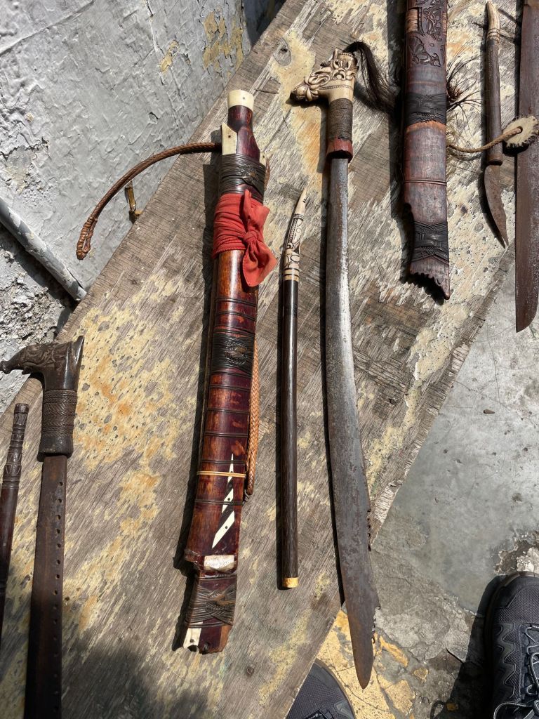 Her er nogle af de meget fine knive fra Borneo, som vi har kigget på. Vi er stadig i gang med at diskutere priser via WhatsApp med sælgeren.