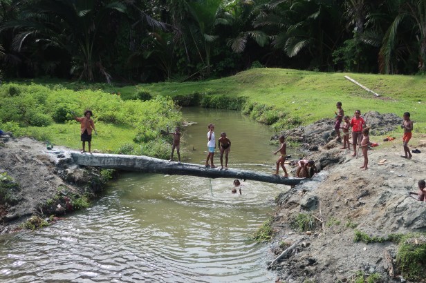 På vejen tilbage til Jayapura kom vi forbi disse børn. Der skal ikke så meget til; bare lidt vand og en træstamme 🙂