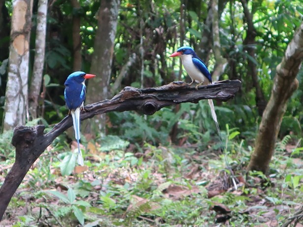 Vi har set mange isfugle rundt omkring i Verden, men aldrig nogen så flotte som disse. Læg mærke til, hvor lange halefjerene er på fuglen til højre.