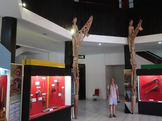 Her er vi på det mindste af de to museer, Museum Negeri Provinsi Papua, hvor vi blev fulgt rundt i hele udstillingen af to af stedets tre ansatte. Det gav os mulighed for at stille en masse spørgsmål, som blev besvaret efter bedste evne på lidt vaklende engelsk. Indoneserne skal have den store ros, at de ikke er blege for at kaste sig ud i noget engelsk, selvom deres ordforråd ikke er stort.