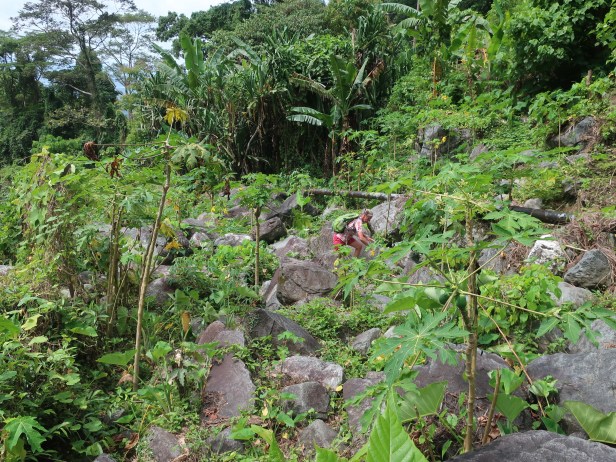 Det var en fin tur op og ned til/fra vandfaldet, men den sidste etape var en kende uvejsom, og der var mange klippeblokke, der skulle forceres. Som billedet viser, er Camilla ikke bleg for at benytte klatremetoden “ned-på-alle-fire”.