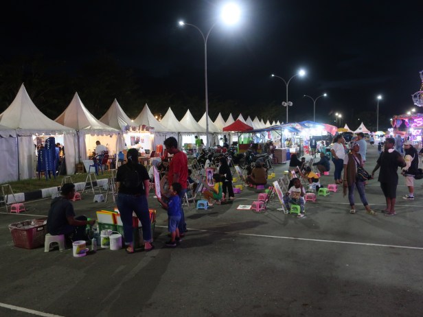 Lidt udenfor Jayapura var der et lille tivoli, der åbnede hver aften. De fleste af fornøjelighederne handler om at spise – indoneserne er VIRKELIG glade for mad og kager og kan konsumere umådelige mængder – men her kunne børn få et stykke flamingo med et fortryk motiv, der skulle farvelægges med akrylfarver. En rigtig hyggelig idé, der ikke kræver en masse.