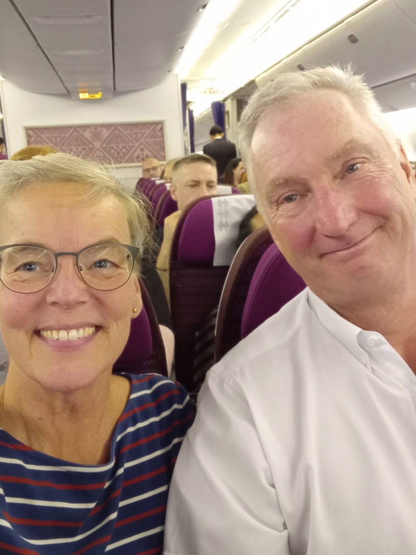 Nu sidder vi her endelig på 47D og 47E. Om 11 timer er vi i Bangkok og nyder 32 grader i fuld sol. Kan I huske solen?