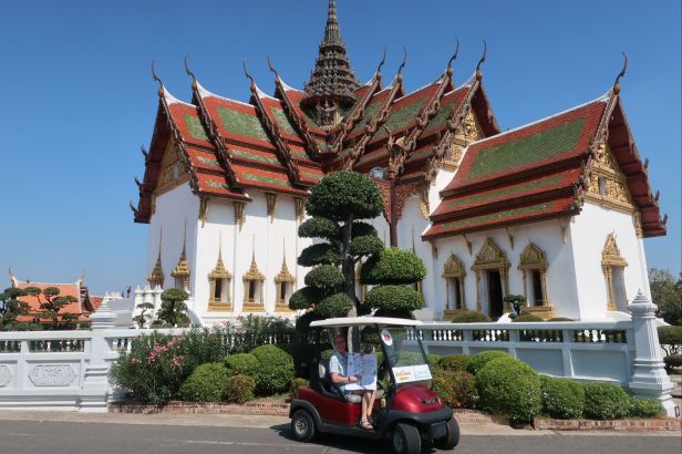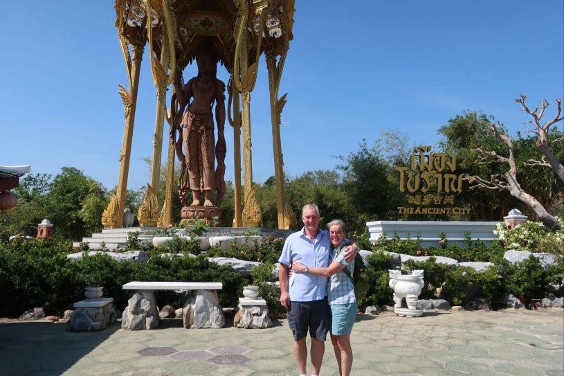 D. 1. januar er en helligdag i Thailand, så det meste er lukket i Bangkok – dog ikke vores skrædder, Brioni at Bangkok, der holder åbent alle årets dage. Så vi startede 2025 med at bestille 6 skjorter til Peter og en kjole, en nederdel og en top til Camilla. Efter af have slagtet sparegrisen kørte vi ud af Bangkok mod syd for at se The Ancient City, der bliver kaldt Verdens største privatejede museum. Museet fylder 316 ha og er bygget og financieret af en thai-kineser, der ønskede at bevare viden og kunnen om de oprindelige byggeskikke i Thailand. Parken omfatter en enorm mængde replika af virkelige bygninger og monumenter fra hele Siam; de fleste er bygget i mindre skala end originalen. Det var en smadder god oplevelse, og et virkelig smukt sted, hvor tingene bliver vedligeholdt og passet. Entrebilletten kostede 700 THB (ca. 140 dkr), hvilket absolut er i den dyre ende i Thailand, men det var alle pengene værd.