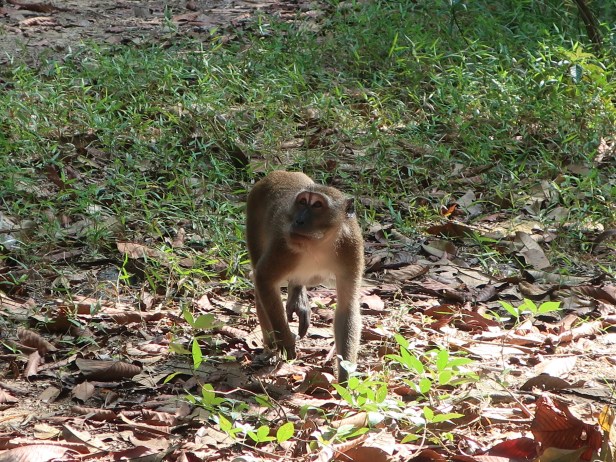 Her en langhalet macaque-abe, der var overalt; selv på terrassen ved vores hytte. Det er en virkelig opportunist.