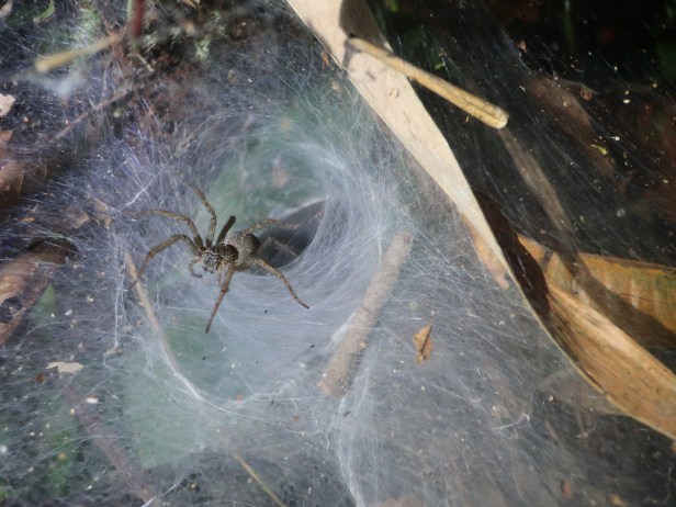 Parken inderholder et utal af edderkopper, som desværre er utroligt svære at fotografere, men her fandt vi en “linselus”, som gerne stillede op midt i sit flotte spind.