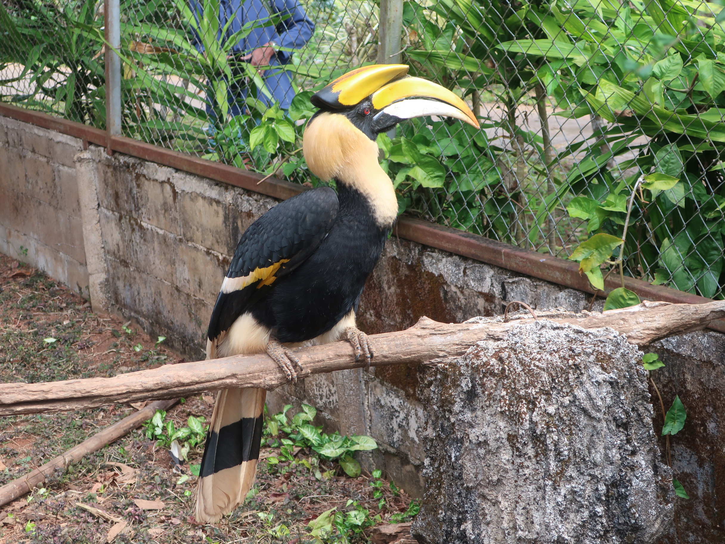 Som tidligere nævnt er vi altid på udkig efter Hornbill (næsehornsfugl), og her har vi været heldige at få et perfekt billede – desværre i bur – af en Great Hornbill. Og den ER great! Den er over en meter fra halespids til toppen af næbbet, og vi gætter på, at den vejer 4-6 kg.