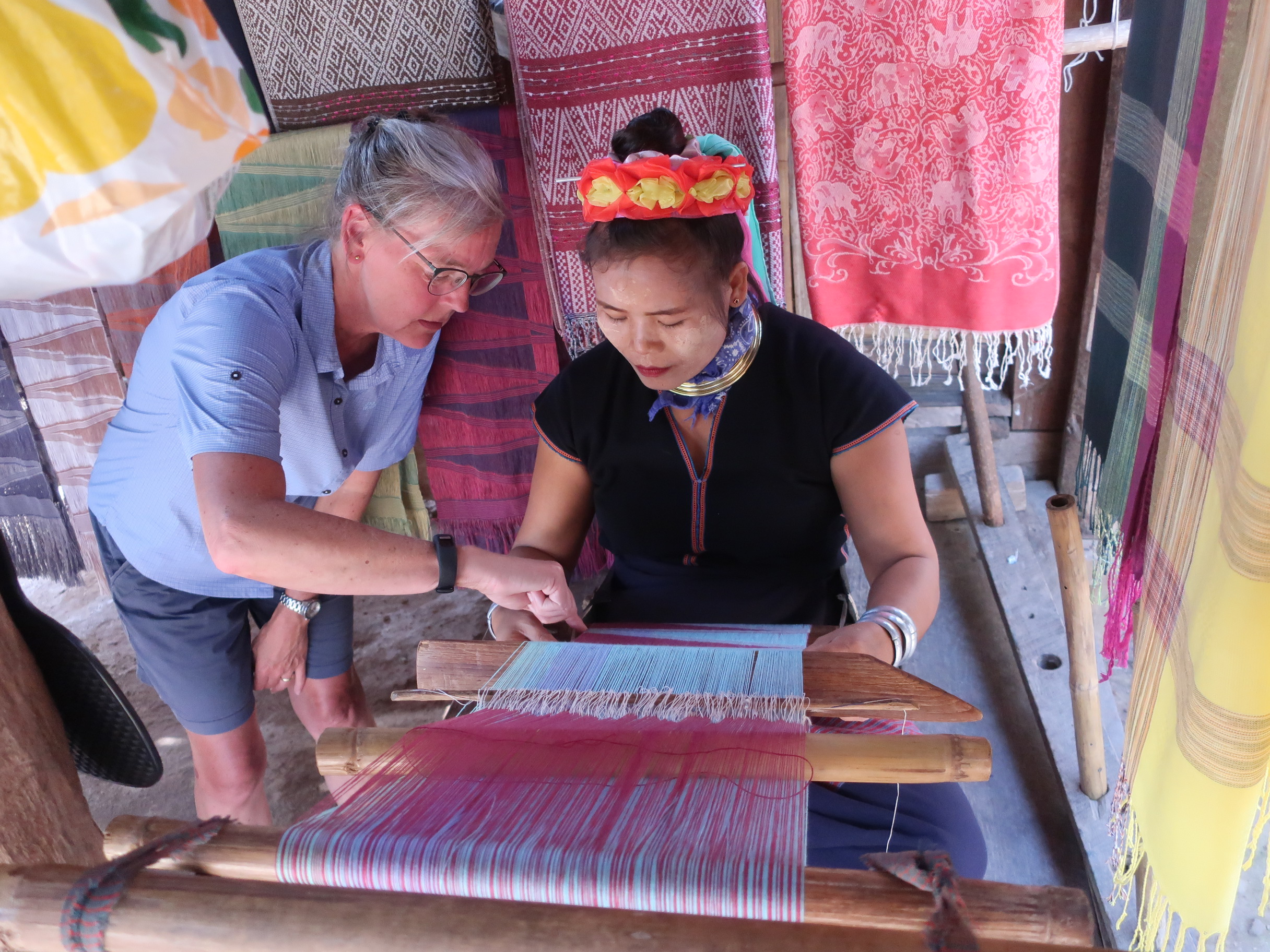 Kayan-folket er meget dygtige håndværkere, og alle kvindene lod til at have en væv, som de lavede de smukkeste tørklæder på. De kostede tæt på ingenting, så det var svært ikke at købe en hel bunke.