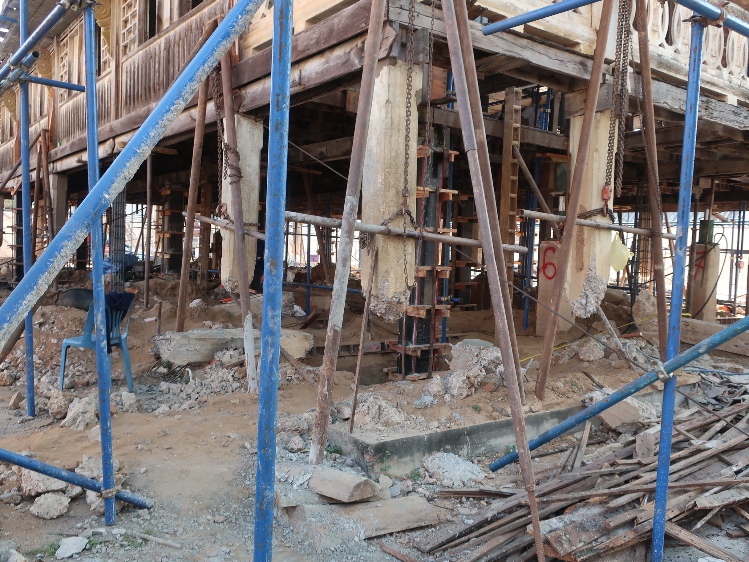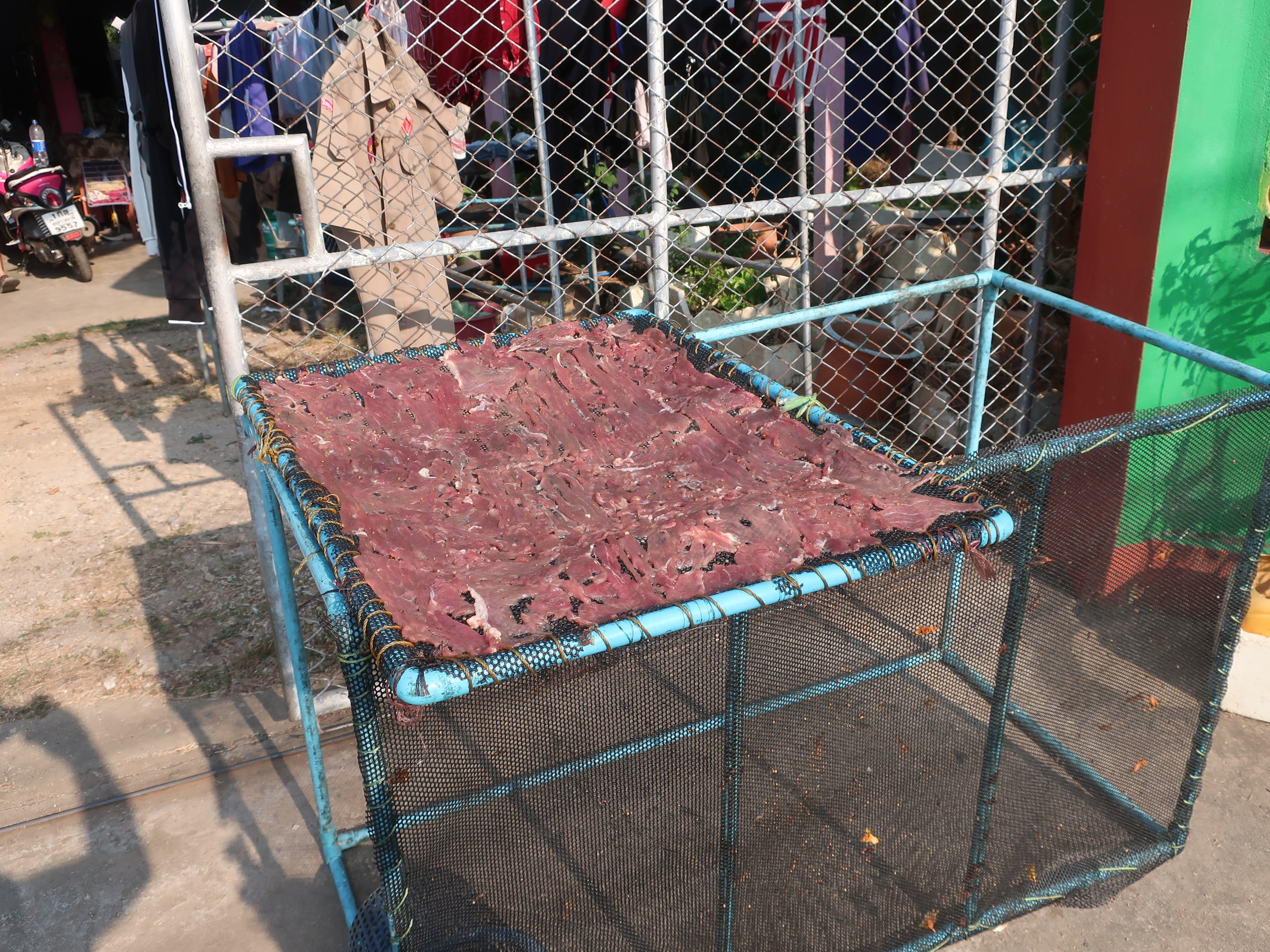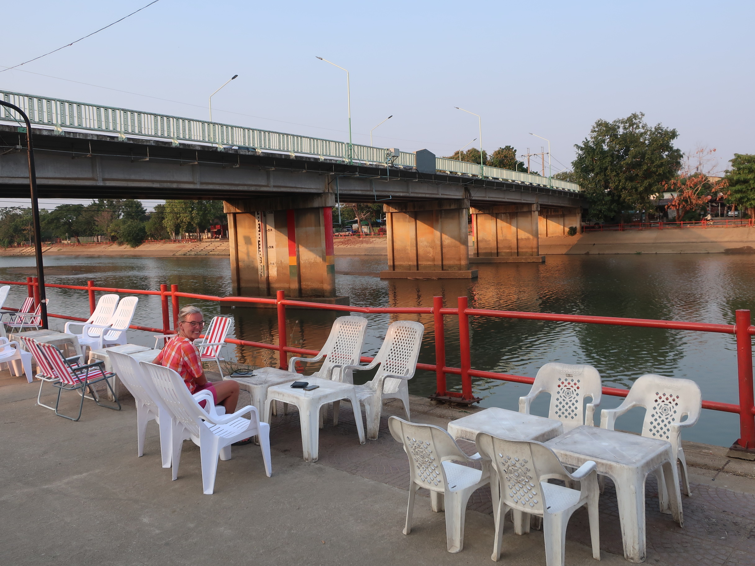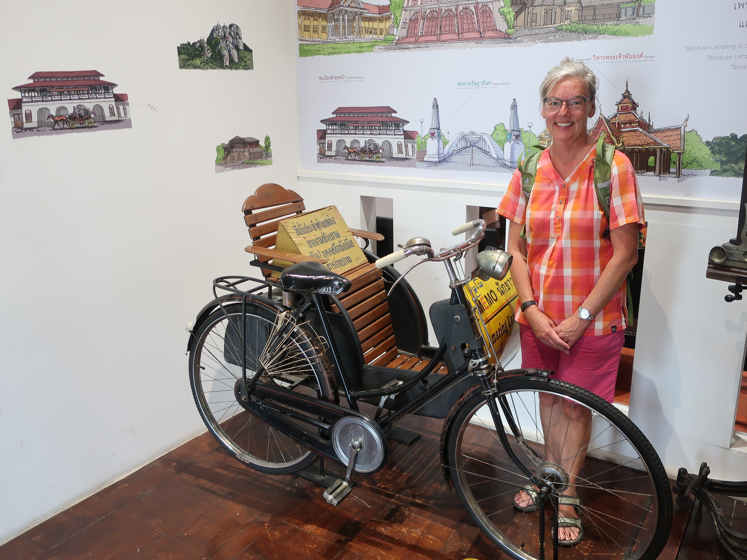 Vi kan lige så godt starte med det vigtigste først – stamstedet. Et sted, hvor der sad mange thaier både unge, gamle og familier, og vi var de eneste blege og selvsagt de første på hele flodbreden. FANTASTISK! Her blev næste dag planlagt, bloggen skrevet og valget af aftenens spisested truffet.På vores ture rundt på den lejede motorcykel blev vi nogle gange præsenteret for det mad, som vi spiste om aftenen. Efter denne oplevelse af soltørret (spyfluetestet) svinekød blev retter med denne ingrediens nøje overvejet inden bestilling.Da turens to deltagere begge er i byggebranchen bliver vi ofte nysgerrige, når vi ser en byggeplads. Her er en lokal entreprenør gået fuldstændig amok med en betonhammer – også inden, at de nye fundamenter var støbt. Men hvad gør det, når man bare tager en masse kædespil og hænger Wat’en op i dem? Gud eller Buddha må være på entreprenørens side, for den metodik var aldrig blevet anvendt i Danmark. Trods thaiernes måske lidt hårdhændede restaurering af deres wat’er, er der ingen tvivl om, at de kan dereshåndværk. Prøv bare at se dette alter og tagkonstruktion i Lampangs ældste wat, Wat Phra Chedi Sao.Lampang har et udmærket museum, der fortæller om provinsens historie og ikke mindst deres stolthed over, at en af de fire grundlæggende historier om Buddhas “rejser” netop foregår i provinsen. Vi var mest begejstrede over den fantasifulde måde, som præsentationerne var udført på. En rickshaw er meget passende på museet, da den kinesiske befolkning har fyldt meget i forbindelse med udvikling af både byen og provinsen. Det var oven i købet ganske gratis at komme ind på museet.