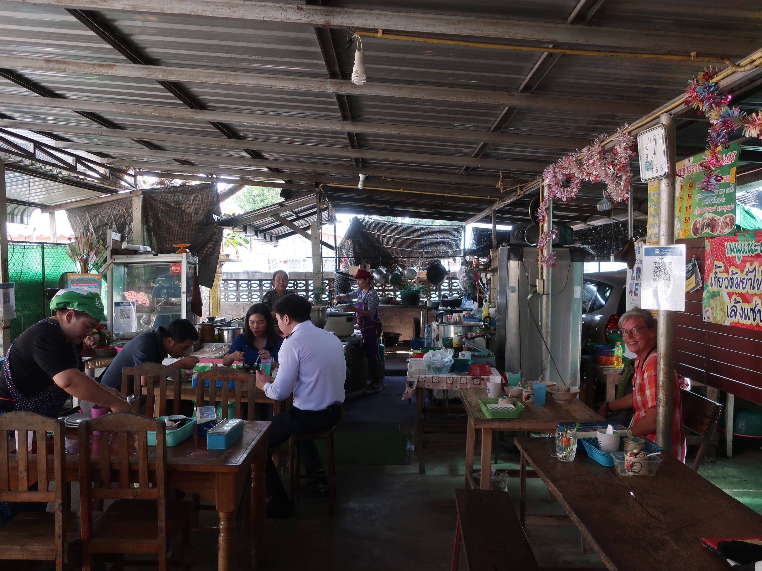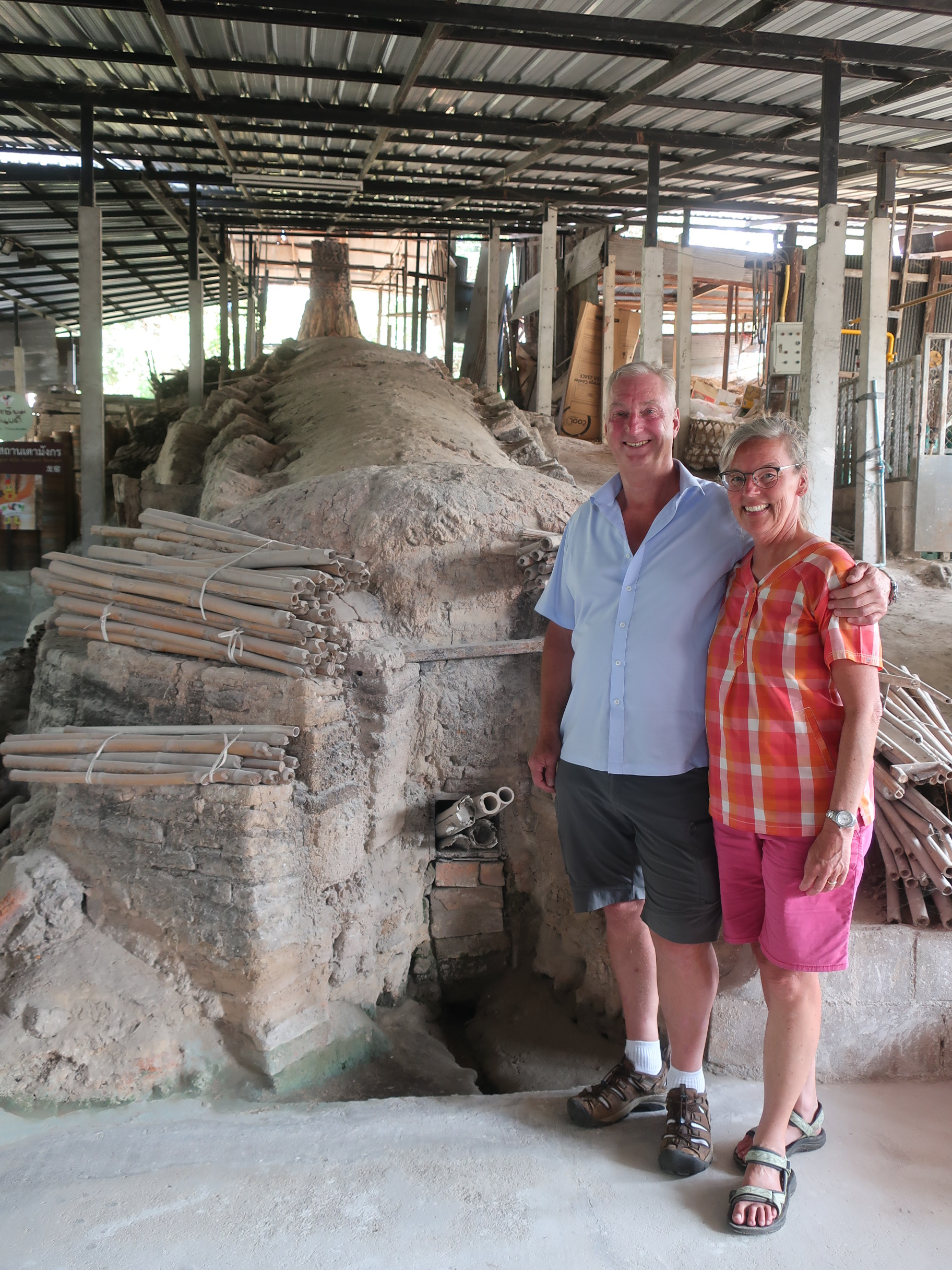 For at understrege hvor lokal og betydningsfuld produktionen af porcelænsskålen er, har man valgt at bevare den oprindelige brændeovn, som grundlæggeren selv byggede, og som stadig blev brugt indtil for 16 år siden. Det tog 14 dage at fylde den op med porcelæn, 7 dage at brænde porcelænet og 7 dage at køle porcelænet ned igen. Så en måneds produktion var én brænding. Ovnen blev fyret udelukkende med bambus.Som tidligere nævnt indtager vi typiske vores frokost måltid på et suppekøkken. Det smager fantastisk. Også her bliver maden serveret i kopier af den originale Chicken Bowl. Det skal måske nævnes, at alt det med haner og kyllinger alle vegne i Lampang først faldt på plads for os, da vi havde været forbi det lokale museum og fabrikken.